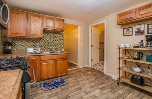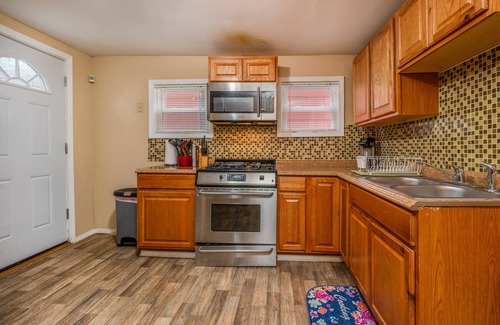 The house feature basic simple kitchen with stainless steel appliances including microwave. Three fully furnished bedrooms. One on the 1st floor with a queen size bed and the other two bedroom on the 2nd floor. The master bedroom on 2nd floor has a king size bed and Smart TV and big scenic window and it's own walk in closet . The house comes with two full bathroom one on each floor. The living room completely furnished including 55” Smart cable TV, dining room has a table with seating for 6.