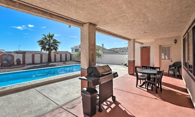 Offering a spa and wellness center, Bullhead City Home Tesla Charger about 3 Mi to River features accommodations in Bullhead City. This vacation home offers accommodations with a patio. There's an outdoor pool and guests have access to free Wifi and parking on-site. The air-conditioned vacation home is composed of 4 separate bedrooms, a fully equipped kitchen with a dishwasher and an oven, and 3 bathrooms. Towels and bed linen are featured in the vacation home. The property has an outdoor dining area. Laughlin Bullhead International Airport is 1.2 miles away.