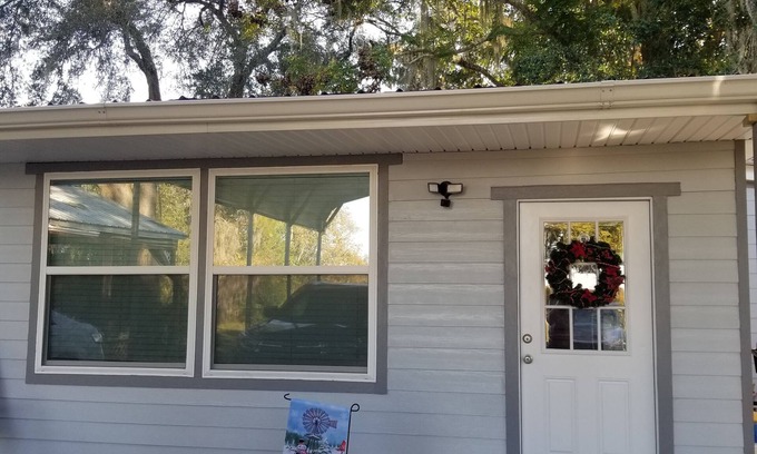 This is a perfect winter spot with a million dollar view. This little 500 sq ft bungalo was just remodeled and ready for winter guests. It is a 1 bedroom with queen bed, 1 bath, living room with sleep sofa, and kitchen with private entrance and carpot. The bathroom is handicapped accessible. We are located 20 minutes frim Crystal River and 30 minutes from Ocala. You have access to a large deck overlooking the canal to the Witlacoochee River and 2 kayaks at the dock. The road dead ends into our driveway so will have no traffic in front of the house. This is a very quiet neighborhood made up of mostly retired.