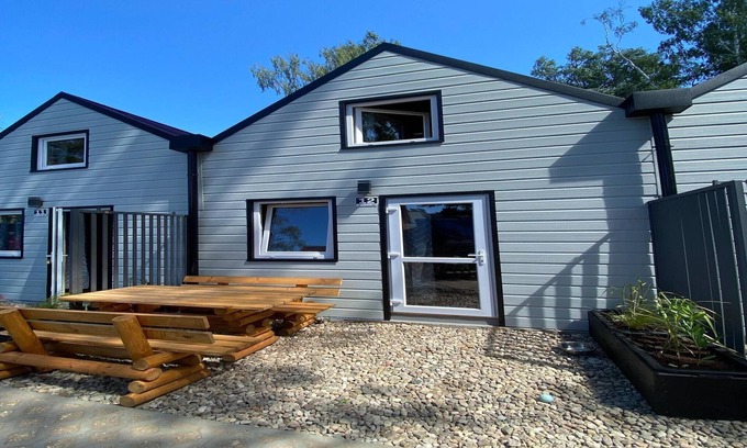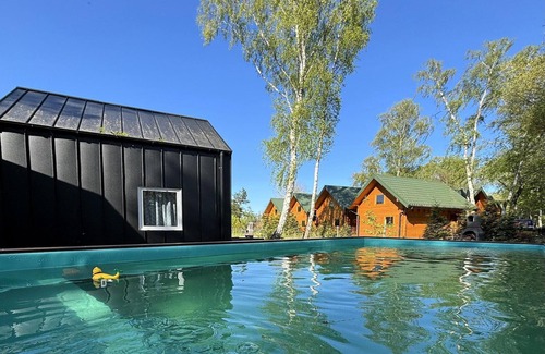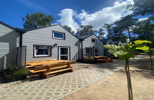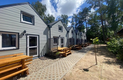 Newly built family resort with swimming pool. In addition to the simple and modern wooden bungalows, a parking space is also available. The location of the commune makes the small, charming Dziwnów swimming pool an ideal place for water sports, hiking or simply relaxing. Particularly noteworthy is the drawbridge that connects the mainland with Wolin Island. Nearby activities: The village of Dziwnów is an ideal place for water sports such as sailing, windsurfing and kitesurfing, wakeboarding and diving. The village has a spa park, pine forests and a promenade encouraging walks and bike rides. In the port, pirate ships and converted fishing boats invite you for cruises on the Baltic Sea Mobility : Not suitable for people with reduced mobility