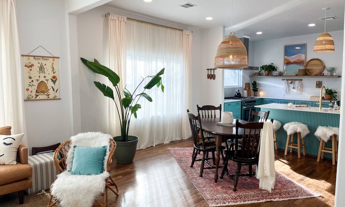 This unique place has a style all its own. It was built in 1948, has recently been renovated, and is located close to Norman's Main Street and OU's campus. It is the perfect little home away from home. Half a mile to coffee shops, breweries, restaurants, and shopping. There is also free parking on the side of the house.