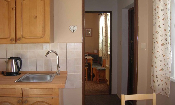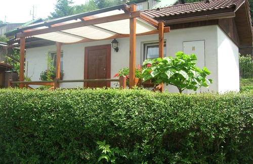 The detached bungalow is furnished in a functional style. The property is located on the outskirts. Also due to the view over the mountains from the property and its quiet and sunny location at the edge of the forest the domicile is popular. Available for shared use: sunbathing lawn, barbecue facilities, terrace and garden furniture.LocationHorní Maršov, 650 m above sea level. The bungalow is located on a 200 sqm enclosed plot, bordered by a fence. The landlord lives in a separate building on the property. Ideal for athletes. Bungalow with mountain views Access is via a path (asphalted). Parking (for 1 car) is available on the property. Specialcentral heating.Facilities: internet access (WLAN). TV reception takes place via electric wire. Pool(usable from early June to early September). Wellnesssolarium. Dogsnot allowed. DistancesShopping 150 m, restaurant 200 m, town center 500 m. doctor, pharmacy each 200 m in Horni Marsov. railway station, indoor swimming pool, sauna, discotheque each 2 km in Jánské Lázně. Railway line 2 km. Main road 100 m. Sauna and solarium on site. Trutnov with beautiful town square and bars 17 km away. In summer: Open air bath 5 km in Mladé Buky. fishing in Fluß Upa 1000 m. tennis in Horni Marsov 1000 m. boat rental in Lake Dolce 18 km. golf in Mladé Buky 8 km. Bathing lake Dolce 18 km with fishing and water sports facilities. Outdoor swimming pool in Trutnov 17 km. In winter: Ski lift 500 m in Horni Marsov. Ski area 8 km in Pec pod Snezkou (Pec pod Snezkou). ski rental, ski school each 500 m in Horni Marsov. 3 lifts 500 m. Ski Mlade Buky and Janske Lazne each direction 8 km. Trails from the house. DivisionBungalow, 1 floor, 2 rooms (including 1 bedroom), 31 sqm, in total 4 beds. RoomThe entrance to your bungalow is at ground level and leads directly into the hallway with wardrobe. Bedroom (11 sqm) with 1 double bed, TV and dining area. Living/bedroom (20 sqm) with 1 double bed and TV. Cooking nook in the living & bedroom with fridge, microwave, toaster and electric kettle. 2 bathrooms each with shower, 1 washbasin and WC. Terms of lease and pricesIncluded in the priceinternet access, parking place, electricity, water, final cleaning, bed linen, Wireless Internet access. Side costs-Costs on the spot:/Obligatory:hand towels to bring along. local tax by local tariff.Deposit:EUR 200,-/object.