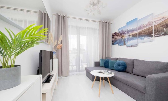This stylish and comfortable apartment can accommodate up to 4 people - an ideal choice for a family getaway or a group of friends. The highly functional 40 m² space consists of a living room with a kitchenette, a bedroom and a bathroom with a shower. The living area, equipped with a comfortable sofa and a flat-screen TV, is the perfect place for rest and relaxation. There is also a balcony with garden furniture - the perfect place to sip your morning coffee or relax after a day of sightseeing. The apartment has access to high-speed free Wifi internet. The air-conditioned bedroom offers a very comfortable double bed, as well as a desk with a chair, so guests working remotely will be able to take care of business duties in comfort. A wide range of amenities and comprehensive furnishing of the apartment with necessary kitchen and bathroom accessories and equipment guarantees a comfortable stay. A complimentary set of toiletries (soap, shampoo and shower gel), towels and linens are provided to facilitate the start of each visit. On the apartment's equipment guests will also find a washing machine, which is sure to be appreciated by families with small children or those planning a longer stay. The apartment is distinguished by careful finishing and modern design. The interior is bright and functionally designed, meeting all the needs of guests.