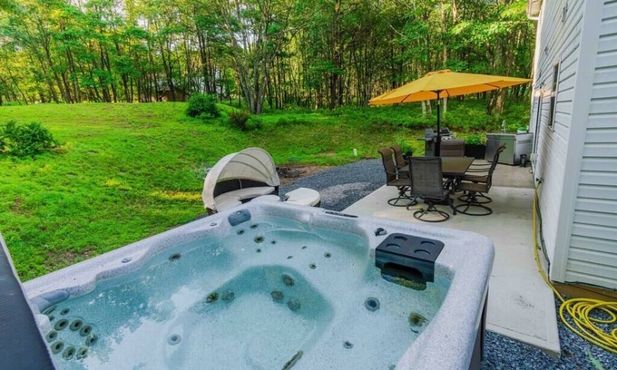 Bring the Whole Family to This Spacious Retreat! Enjoy a newly renovated home with a games room, lounge, grand dining table for 12, hot tub, and funky loft sleeping 4. Perfect for business travelers with high-speed internet and a comfortable workspace. Conveniently close to top Poconos attractions like Big Boulder Ski Resort. Strict age requirement: groups must average 25 years old or older. ID required.