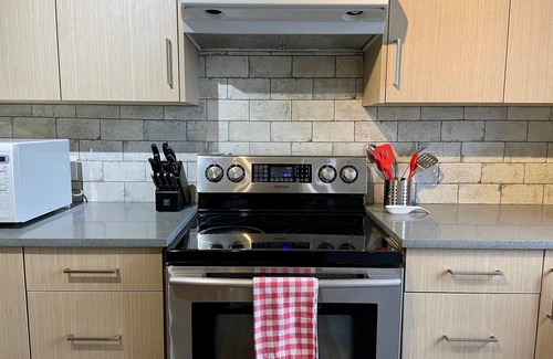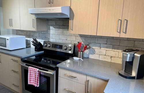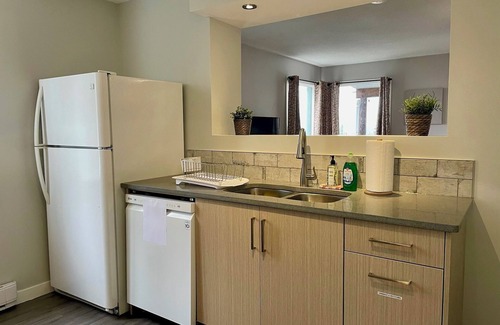 Want a peaceful and tranquil atmosphere to lay your head at night with all the comforts of home? The BX Barn Suite is the perfect place for you! This incredible 1 bedroom (+queen size sofa bed) & 2 bathroom self-contained suite sleeps 4 and is located just 20 minutes from SilverStar Mountain Resort. Enjoy sweeping mountain and valley views while you cozy up to the fireplace after a long day of exploring all that the Okanagan Valley has to offer. The fully equipped kitchen has everything you will need including a Keurig coffee maker.