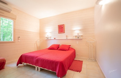 Built on the same model as the neighboring cottage "Côte Biron", "BONAGUIL Side" is perfectly independent and consists of two rooms each equipped with reversible air conditioning and ample storage space, perfect for the comfort of 4/5 people demanding. A master bedroom with double bed (180 cm x 200 cm) and a triple room (two twin beds and a single bed 90 cm x 200 cm) share a bathroom with walk-in shower.