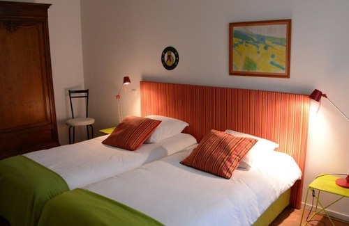 Isabelle, potter whose workshop you can visit on site & Frédéric, architect who designed and supervised the entire rehabilitation, welcome you to an authentic 18th century winery, carefully restored, nestled on an intimate closed property of 1 ha ultra neat & steeped in history (former post house), composed of several multi-secular character buildings all restored according to the rules of the art & sublimated by a gentle contemporary reinterpretation. Calm & tranquility in the middle of the countryside, in the heart of a small typical village of the upper Mâconnais with a very rich heritage, famous for its Romanesque church from the 11th century (the "Lighthouse of Southern Burgundy" dominating the promontory of the Saône valley; sublime panorama to the Alps) & its 3 lakes (fishing & swimming). You have a large sheltered private terrace (& its pleasant "outdoor" relaxation lounge) and enjoy the vast park with century-old trees, lawned & vegetated with fruit orchard (cherry trees, apple trees, fig trees, plum trees, mirabelle plums, kiwis, etc.), a beautiful heated swimming pool (14x3m) and various rest areas & leisure services (table football, table tennis, football goals, etc.). Comfortable gîte with the exotic atypical architecture of an old building that has been revisited. Warm country character mixing contemporary spirit and "vintage chic" atmosphere. Very charming. Cozy & cocooning. Composition: Semi-detached house on a property housing 3 guest rooms + 2 gites. Wireless. Gas central heating. Wireless. Wine cellar. Gîte on the ground floor: living room-kitchen-lounge, 2 bedrooms, 1 with mezzanine accessible by a miller's ladder (2 single beds 90x190cm / 3 single beds 90x190cm) with private bathroom and toilet (1 with shower / 1 with bathtub). Private sheltered terrace. Closed park of 1 ha in common. Shared heated swimming pool accessible at dedicated times for the 2 gites (10-12am/2-5pm). Private parking. Local bikes / motorcycles. Amenities 2.5 km.