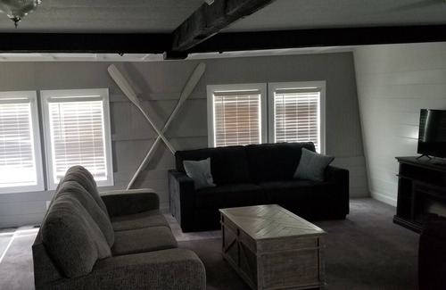 Come to the Lake to get in tune with Nature! Want to walk to the lake? With a couple minute walk involved there is a trail directly across the road from this house that leads you right to the boat dock where kids usually swim off to the side with the State park including two big playgrounds located just to the left of the ramp. This space includes a Full kitchen with supplies, Washer & Dryer, 2 Smart TVs to stream your choice of service by logging into your account or access the free preloaded selection.