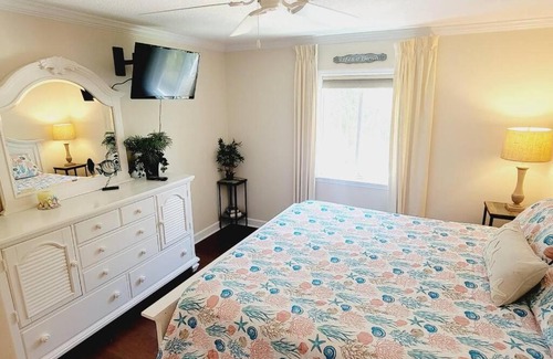 Situated in Mallory Park, 1.9 km from East Beach and 700 metres from Kings Terrace, C2 Ocean Walk, Pool view, village area, cozy! offers air conditioning. This property offers a private pool and free private parking. The holiday home has 1 bedroom, 1 bathroom, bed linen, towels, a flat-screen TV, a dining area, a fully equipped kitchen, and a balcony with pool views. Popular points of interest near the holiday home include Demere Park, Saint Simons and King City. The nearest airport is Brunswick Golden Isles Airport, 25 km from C2 Ocean Walk, Pool view, village area, cozy!.
