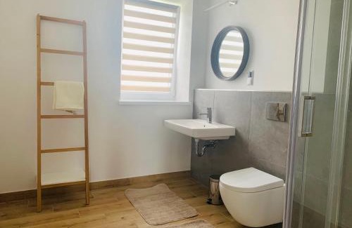 Cały dom w Mielnie! is located in Mielno, just 26 miles from Town Hall and 26 miles from Kołobrzeg Railway Station. Housed in a building dating from 2020, this vacation home is 27 miles from Kolberg Pier and 27 miles from Kołobrzeg Lighthouse. The accommodation offers free shuttle service and a shared kitchen for guests. With free Wifi, this 6-bedroom vacation home provides a satellite flat-screen TV, a washing machine, and a fully equipped kitchen with a dishwasher and oven. Guests can take in the views of the garden from the terrace, which also has outdoor furniture. For added privacy, the accommodation has a private entrance and soundproofing. There is a garden with a barbecue at this property, and guests can go cycling nearby. Popular points of interest near the vacation home include Mielno Beach, Mielno Koszalińskie Train Station, and Friendship Promenade. Solidarity Szczecin-Goleniów Airport is 86 miles away.