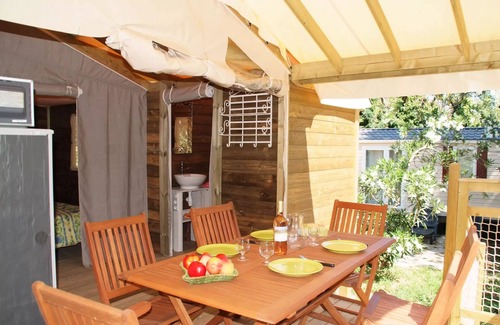 Details: City center access : 1000 m Wi-Fi access : supplement on all camping - Connection for one device: 1 day - 4 euros ; 7 days - 12 euros; 14 days - 18 euros // Connection for 2 devices: 1 week -18 euros; 2 weeks - 30 euros // Connection for 4 devices: 7 days -30 euros; 14 days - 50 euros Playground for children Family animations : day and evening - July/August Barbecue : only gas and electric barbecues are allowed, coal barbecues are not allowed. Deposit (in supplement) Kids club : (4/12 years) - July/August only Lake / river distance : 100 m Grocery store : open all season Laundromat : 6 euros washing, 6 euros drying Number of stars : 4 Ping Pong Swimming pool : heated - paddling pool - heated balneo - 2 hot tubs - open all season at opening hours (please consult on site) Near airport : Marseille Provence Airport #MRS (157.0 km), Beau-Côte d'Azur Airport #NCE (68.7 km) Environmental charge : 2.50€/night per person (except for children under 2 years old) - to be paid on site Restaurant : lounge The Fishermen - open all season in the evening Fitness room : adult-only gym - free access Snack bar : La Paillotte - open all season Spa : and wellness centre with sauna and jacuzzi - extra charge - see on-site rates and regulations Tourist tax (surcharge) : €0.86/day/person aged 18+ (subject to change) Multisports ground : football - volleyball Pets Allowed : 25€/week - 2 animals max/housing - up-to-date vaccination book - cat dogs 1 and 2 forbidden - to be settled on site Coffee maker Deposit (in euros) : 200 Unusual Number of bedrooms : 2 Number of double bed : 1 Number of single beds : 1 Number of pieces : 3 Number of toilets : 1 Number of bathroom : 1 Fridge Surface (m²) : 22 Terrace Dishes and cutlery