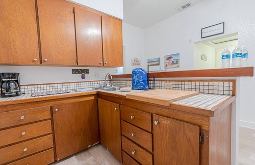 The exterior spaces of this duplex are shared between the guests in the two units (upstairs – Cabana Boy, downstairs – Beach Babe) including grill, fish cleaning table, picnic tables and enclosed parking.