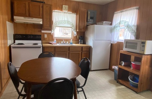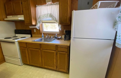 Cabin 12 - two-bedroom cabin, one bedroom has a double and a twin bed, other bedroom has a set of twins which can be pushed together to make one large bed (with advanced notice). Fully equipped kitchen and comfortable living room area with two recliners and a sleeper sofa.