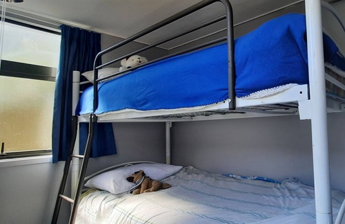 Cabin contains, One Queen bed in the bedroom, single bunk beds in the second bedroom and sofa bed in the Lounge. Bathroom has its own shower and flushing normal toilet.