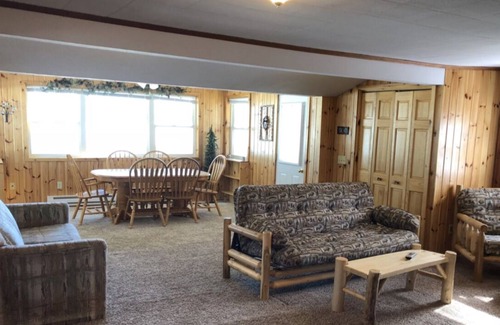 Cabin 15 is a 2 bedroom lakefront cabin. One bedroom has a queen sized bed, the other bedroom has a full bed & twin bed. There are 2 Ez Beds in the living room (both are full size) they look like a futon, but are very comfortable to sleep on. The bathroom has a tub/shower combo. Cabin 15 has a sunroom addition with a wonderful lake view! There is a small covered deck with a BBQ grill and a large fire pit area. Rates are based on 4 adults but can sleep up to 9. This cabin does have a washer & dryer! All of our cabins have LCD HD TV's, Direct TV & wireless internet. Our kitchens are fully stocked right down to the crock pots! Please bring your own towels, both kitchen & bath. This cabin includes 1 dock space, each additional space is $20 per day or $100 per week. We do not provide towels, please bring kitchen, bath & paper towels!