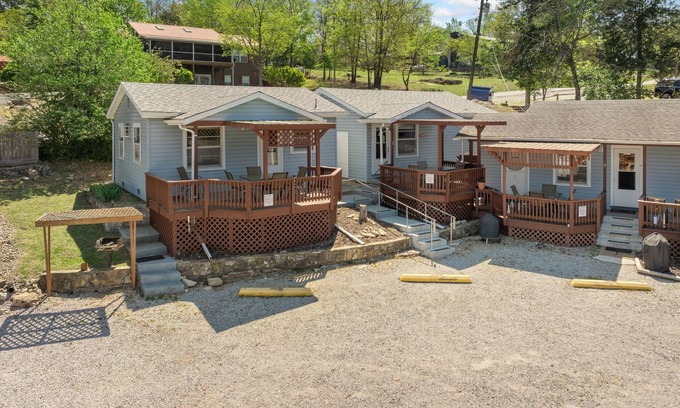 Welcome to Sunset on the Shoals – a cozy lakeside retreat on Bull Shoals Lake. Cabin Two is a two-bedroom, one-bath cabin with a full kitchenette, perfect for couples, families, or small groups. There is also a pull out sofa for extra sleeping arrangements. Enjoy peaceful surroundings, beautiful lake views, and easy access to fishing, boating, and relaxation. Included on the property is a shared game room, large 80 ft deck overlooking the lake and a shared swim dock -no lifeguard on duty. Enjoy all that the lake has to offer or take a day trip to nearby attractions like Branson, Mo.