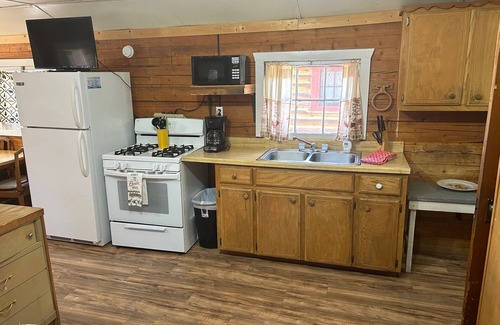 We have 12 individual cabins, all with covered porches furnished with a swing & chairs. Each cabin has it's own bathroom with shower, fully equipped kitchen, and gas furnace. Cabins are completely furnished with towels, bed linens, blankets & pillows, plus all your cooking utensils, table settings, refrigerator, coffee maker, stove, oven, microwave, toaster, & flat screen TV. Guests will also enjoy; free Wifi, Hot tub, central BBQ grill, Fire pits, Recreation Hall, Seasonal Showers, Laundry & Fish Cleaning Station.