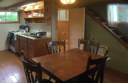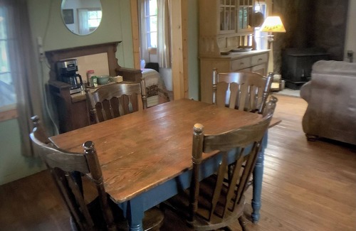 Large lake front cabin built in the 1940's it shares a 2 acre lot with historic Point Comfort Lodge. Recently remolded this rustic log style cabin has a sleeping loft, small bedroom and fold out couch in the living room. This cabin easily accommodates a family with privacy. Kitchen, dining area and living room with fold out couch and side chairs. Kitchen is fully furnished. Queen size bed in loft area and queen bed in ground floor bedroom. Couch folds out to a queen size bed. Maximum persons, including children is six. Front deck has table and chairs for outside dining with a view of the lake. Free WIFI