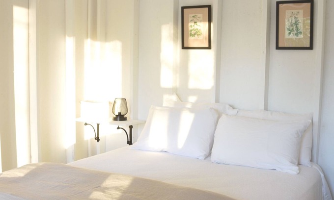 Your double occupancy cabin is designed for ultimate glamping comfort. Get the best night's sleep you've ever had under our down blankets, nuzzled between sateen sheets. Each room is provided with all necessary linens, towelettes, filtered water and a lantern. An oscillating fan in each room helps keep summer temperatures comfortable.