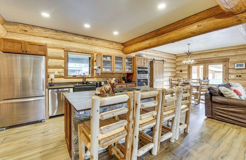 Find the ultimate outdoorsy getaway at this authentic log cabin vacation rental in Red River! Located less than a mile from Red River Ski & Summer Area, the 6-bedroom, 3.5-bath home ensures easy access to skiing, fishing, hiking, and more. After an active day, grab dinner and a drink on Main Street before heading back for a relaxing evening around the fire pit. All season adventures await!