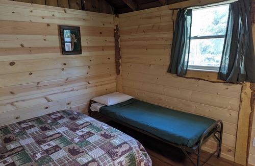 Please note: This is a rustic cabin, meaning there is no bathroom inside. We have a climate-controlled shower house with bathrooms behind the store building.