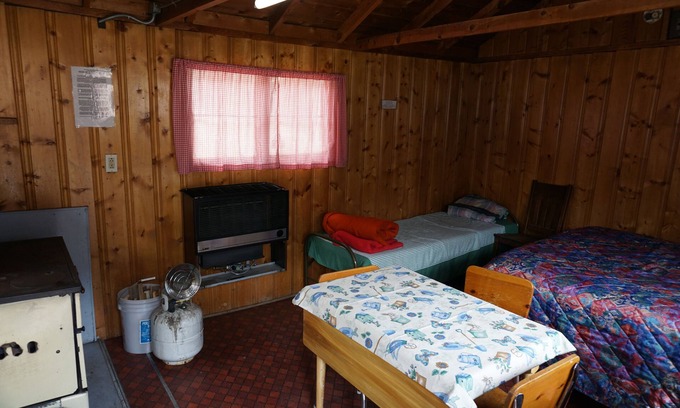 Please note: This is a rustic cabin, meaning there is no bathroom inside. We have a climate-controlled shower house with bathrooms behind the store building.