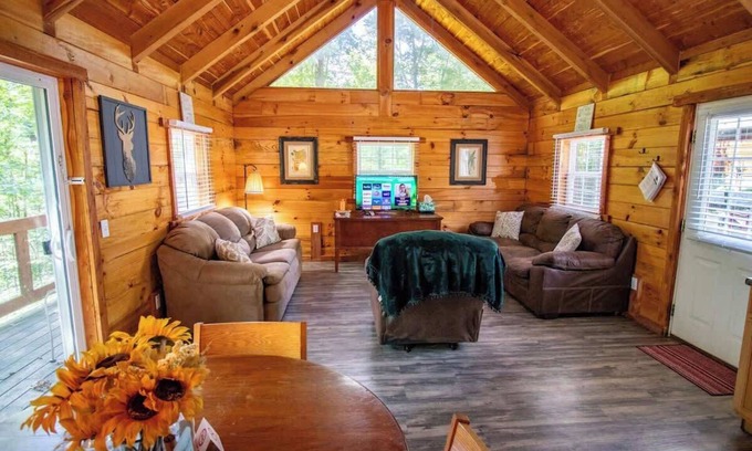 Our guests enjoy easy and convenient access to the cabin, starting with private parking and self check-in using personalized door codes—no need to worry about keys! You'll also have free WiFi throughout your stay, and for those cozy evenings, a private fire pit and sitting area are just outside your door, perfect for unwinding. Plus, if you need any essentials, a Dollar General store is conveniently located right across the street, making it easy to grab whatever you need.