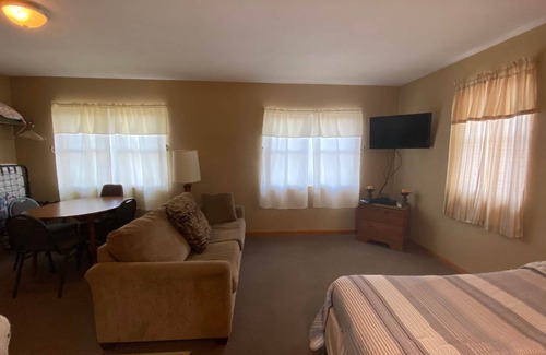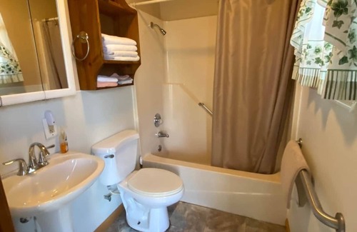 Cabin 7 - single room, two full-size beds and hide-a-bed. Fully equipped kitchen, range with oven, refrigerator, bath with tub and shower.
