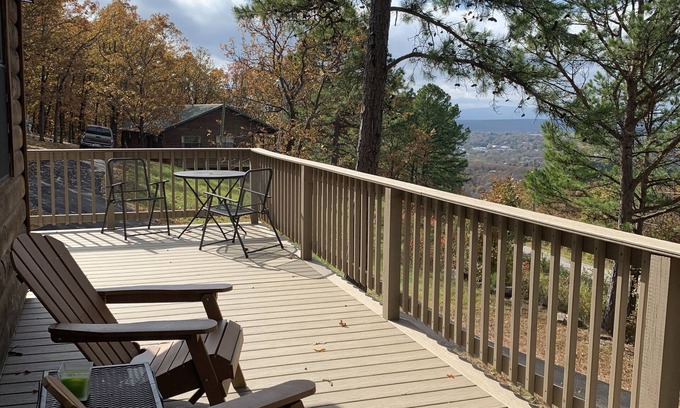 Cabin 1 is a cozy little cabin just steps from Heavener Runestone Park in Heavener, Oklahoma. The view is spectacular and feels very private and secluded! The cabin boasts a full size kitchen and living area with 1 bedroom with queen size bed and can accommodate additional guests.