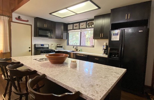 Cabin has everything you will need for your stay all new inside furnishings,4 new queen beds, sheets, blankets, new kitchen, cook ware, newly remodeled inside and out to maintain 70’s look with the newest of amenities. We offer a full huge game room with 5 arcade games, pool table, ping pong, fuseball, dart board and a full size slot machine. The back yard large wrap around deck which has a bbq to relax and enjoy the outdoors. We are located in the prime spot close to arrowhead, snow valley ski resort and walking distance to running springs town. Parking is easy with a large drive way for 4 cars and easy access to the top points of interest.