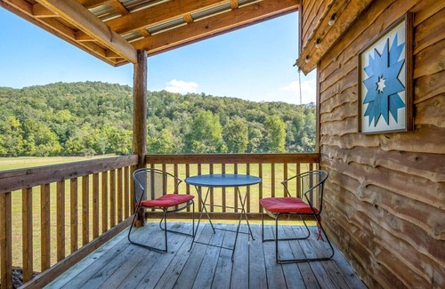 The Cabin-ette is an itty bitty 350 sq ft creek-side Cabin in Mountain View, AR- perfect for one or two people. With all the basics you need for an Ozark getaway, you'll want to snuggle up with the one you love in this quaint tiny cabin. The cabin-ette has one queen bed, kitchenette with the basics, and bathroom with stand-up shower. Drink your coffee on the covered porch watching the sun rise over the hills. You may even spot a deer grazing or a bald eagle flying over the meadow.
