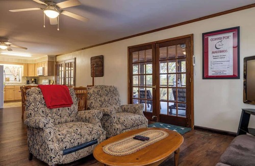 Escape to the Shenandoah River beauty at Common Ground! This charming 2-bedroom cabin invites you to unwind in rustic elegance. Sip your morning coffee overlooking the river or melt away stress in the hot tub under the stars. With 2 full bathrooms, a charcoal grill and cozy vibes throughout, it’s the ideal spot to recharge. Stay connected with DIRECTV and WiFi or venture out to the hiking trails/ river adventures, Common Ground offers many ways to savor the Shenandoah Valley!