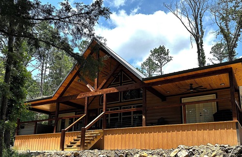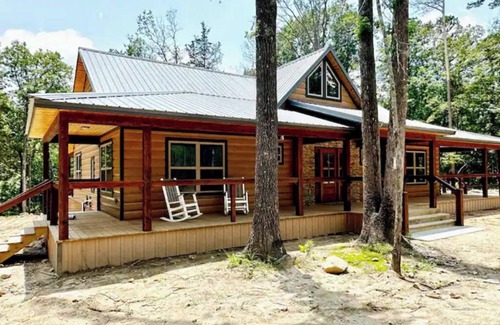 This cabin was built in 2023 and is nestled on 5-acres with the back porch overlooking the Kiamichi River and entrance to the Ouachita National Forest directly to the west. The cabin features huge front and back porches with seating to enjoy the forest on one side and the amazing view of the river on the other. The open concept home was designed with several windows to create an immersive experience of the beautiful nature the cabin is built on. Other amenities include a hot tub, outdoor propane grill, fire pit, washer and dryer, a full kitchen, and spacious bedrooms with closet space to keep your luggage stowed away.
