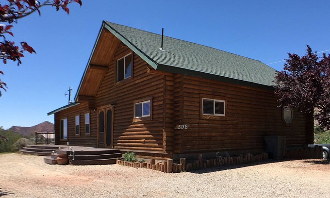 Near Zion Nat'l Park and right outside of St. George, the log home is located in the historic mining district of Silver Reef in the town of Leeds, Utah.