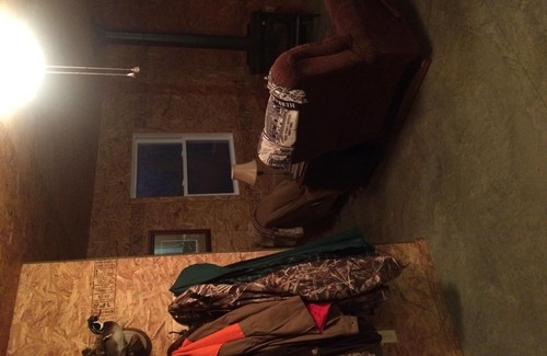 Located in the middle of a 100 acre wooded farm. The cabin is located 1/2 mile from the end of a dead end road. A hunters paradise or for viewing the 2017 solar eclipse. A 1 room cabin with full bath. Qeen bed, and 2 bunk beds. Located on Clear Creek. Perfect for Deer, turkey, and duck hunting. We have a dog kennel located behind the cabin. If you are looking for a real life (wild) hunting experience or just a place to get away, then you will love this place.