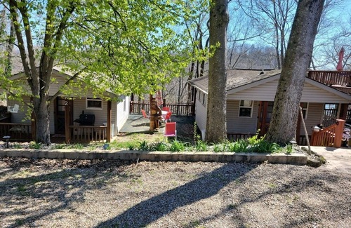 This cabin has all the amenities of city living in the secluded treetops overlooking Pitman Creek. It is a one room cabin with a full bathroom and small kitchen. The covered balcony overlooks the water where our private dock houses kayaks, a paddleboat and a canoe for your use. You are also welcome to bring your fishing boat or just fish off the dock and swim. There is a firepit in front of the cabin and a charcoal grill for your use. There is a hot tub on the property that you are welcome to use. It sits on it's own deck overlooking the trees as well. All of these amenities are shared by any one renting either cabin. There is plenty of parking and well behaved pets are welcome.