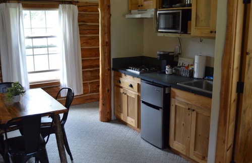 A beautiful 1 bedroom cabin, you be close to town but feel like you're in the woods. Includes a living room with a high quality sleeper sofa, a private attached bathroom and a fully equipped kitchenette and dining room. Or sit on your private porch enjoying your morning coffee and watch the deer stroll by. Feel free to stroll around the host's 21 acres.