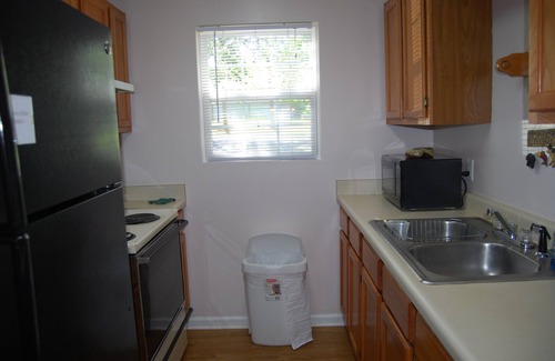 -There is a fully stocked kitchen. Included are pots, pans, dishes, coffeemaker and filters (you supply the coffee), refrigerator, stove, microwave, toaster and hand mixer.