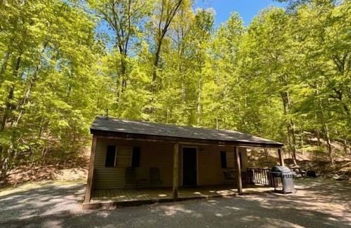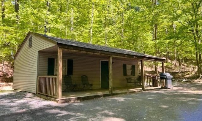 Cabin In The Woods (Sleeps 1-6) - Secluded cabin: 1BR (2Q), 1BA (shower), LR, kitchen, patio, fire pit is located in Eddyville. Cabin In The Woods (Sleeps 1-6) - Secluded cabin: 1BR (2Q), 1BA (shower), LR, kitchen, patio, fire pit provides accommodation, featuring Pet Friendly, Balcony/Terrace, Security/Safety, among other amenities. This Cottage features Pet Friendly, Balcony/Terrace, Security/Safety, to make your stay a comfortable one.