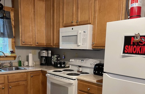 Little Back Creek Cabin offers many amenities for your comfort. Outdoor space for relaxing on the deck to air conditioning, heat and WiFi. A grill is available upon request. The kitchen has new appliances, microwave, coffee maker, some coffee pods along with pots, pans and all eating essentials. Upon awakening many will enjoy the view of deer, playing and eating. The evening brings beautiful skies as the stars seems to constantly show their magnificence, for those avid star gazers. Day trips can include Bath County’s Lake Moomaw, fishing, streams, Warm Spring Pools, Omni Homestead, Snowshoe and other local amenities. Bacova Beer Company in Hot Springs is a favorite of locals and guests. Greenbank Observatory is about an hour away, along with Cass Scenic Railroad. For those that want to experience cabin life, relax, unwind, unplug, Little Back Creek Cabin can also provide the slower pace. Books available to read, walks along the creek and hiking can all be part of your day. Hunting and fishing available less than 10 minute drive to George Washington National Forest.