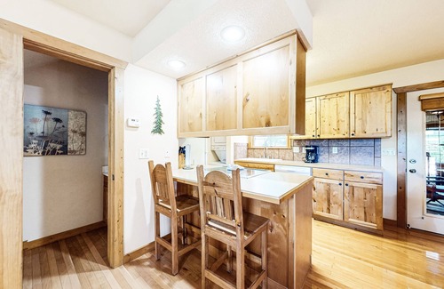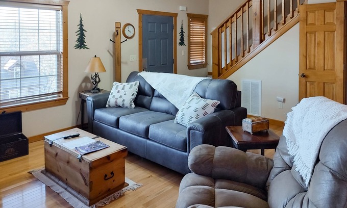 Upon entry, you'll be met with a bright interior, burnished floors, and lots of comfortable furniture. This home has a warm and welcoming cabin vibe, with cedarwood vaulted ceilings, rustic decor, and wooden finishes throughout. Make yourself at home by resting on the plush furniture, curling up with a good book by the fireplace, or watching a movie together on the large TV in the living area. Create culinary charms in the full kitchen, which boasts a breakfast bar and all the appliances and counter space you'll need to prepare wonderful meals. With a king-size bed and a sofa bed, there's more than enough room for everyone to get a comfortable night's rest from the day's activities. Make memories that'll last a lifetime here in beautiful Missouri.