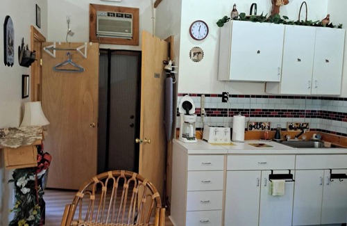 Cabin consists of one bedroom with a queen size bed. There is a pullout couch in the living room. Open floor plan which includes kitchen, dining area and living room. Bathroom has a shower. Towels and linen are provided for you. Full kitchen with everything provided for your use. All you need is your food. Roku tv and antennae, for local channels is available. Internet is currently available. Spend time outside sitting in the rocking chairs on the front porch. There is also a screened in tent that has a table and chairs for your enjoyment. Gas grill, charcoal grill and fire pit are also included. Sleeps up to 4 people. Sorry no pets allowed. We do not charge a cleaning fee, so we would appreciate leaving a tip for the cleaning. Thank you.