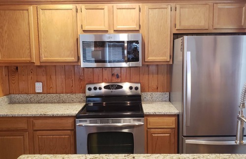 Newly remodeled and updated, you’re sure to be quite comfortable. Featuring 2 bedrooms (King bed in master down/queen bed upstairs) and 2 baths plus a queen sized sleeper sofa. Dish on a 55” HDTV and free high-speed WiFi. Netflix, YouTube and Amazon are available. Set the temp to your liking, prop your feet and relax!