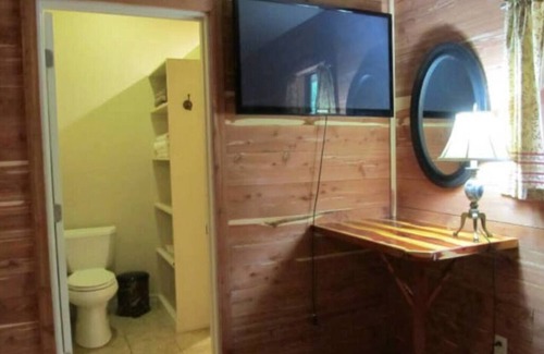 Turner Bend Carriage House is a studio size apartment with one full bed and a bathroom that tucked under a foothill with private drive and lots of parking. This cabin is located just off Highway 23/the Pig Trail is in the heart of the Ozark National Forest and within walking distance to the Woodhaven house and is directly across from the Round the Bend Cabin. It is half mile south from the Turner Bend Store. It is a convenient location to access the Mulberry River or the ATV/OHV trailhead.