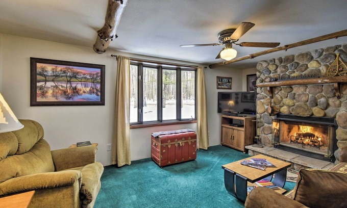 Enjoy an off-the-grid getaway at this 2-bedroom, 1-bathroom, vacation rental near Mountain. This cabin will transport you to simpler times, where you can spend days sipping cider by the fireplace, taking scenic waterfall hikes through the national forest, exploring nearby lakes, and relaxing with loved ones. Golfing, rafting, wineries, casinos, horseback riding, ice fishing, ATVing, snowmobiling, and cross country skiing all await nearby, ensuring you can experience the best of Wisconsin!
