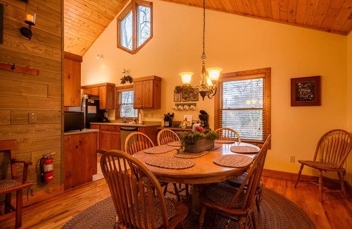 Escape to Appalachian Breeze. The owners have outfitted the home with upscale yet comfortable furniture, mountain and alpine decor, and upscale finishes.