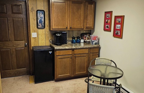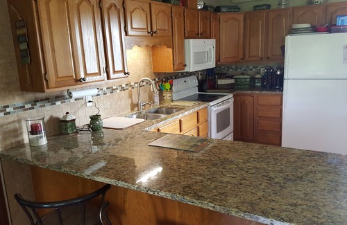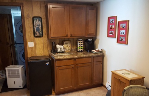The lower level has a family room where there is a TV, 1 Queen futon, 1 twin futon and a bedroom with a full bed. There is a back room where there is twin bed and a full futon and also contains a mini fridge with a little table. There is also a washer and dryer for your use. We have Reverse Osmosis for drinking water.