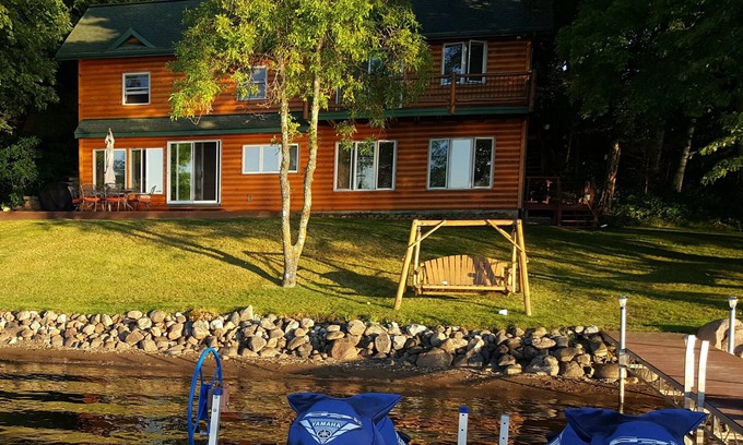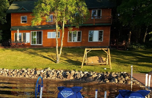 Relax and enjoy this gorgeous lakeside cabin great for families or small groups just 2 hours from the Twin Cities on beautiful Cedar Lake. A fun retreat in all four seasons, over 160 feet of lakeshore is just 50 feet from the lower level walkout -- perfect for swimming/jumping on the floating trampoline/kayaking/stand-up paddle boarding/windsurfing in the summer or riding up on snowmobiles/snowshoeing/cross country skiing in the winter.