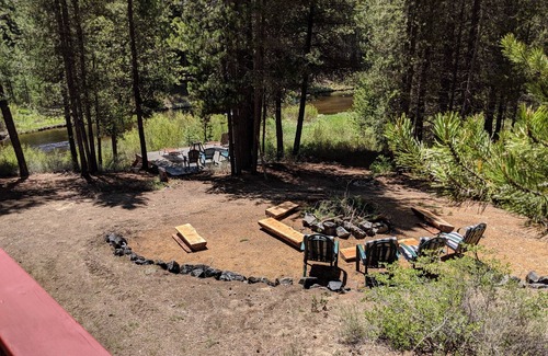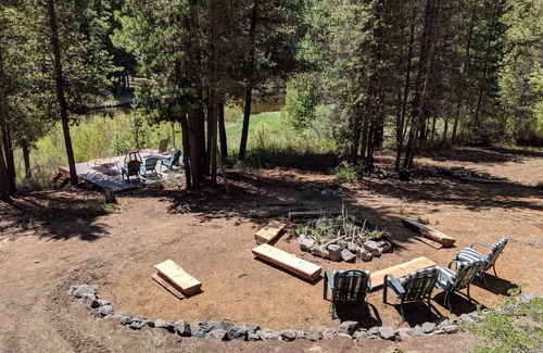 A peaceful and private retreat located on 1.5 acres in Crescent Lake Oregon. 'Riverside' has two cabins, the Main cabin is a 2-bedroom, 1-bath cottage, the smaller cabin is a half bath 1-bedroom, nestled beside the Crescent Creak with slow moving water.. The location offers direct access to endless marked trails, natural sites and abundant wildlife. These cabins are set in a private place with a horse area. Hot Tub for 7, a deck on the mellow stream., great for floating . Enjoy Cascade Mountain views and serene surroundings at this high-desert hideaway, only minutes from the breweries, boutiques and eateries in Oakridge, Crescent, Crescent Lake, La Pine, Sunriver and Bend!