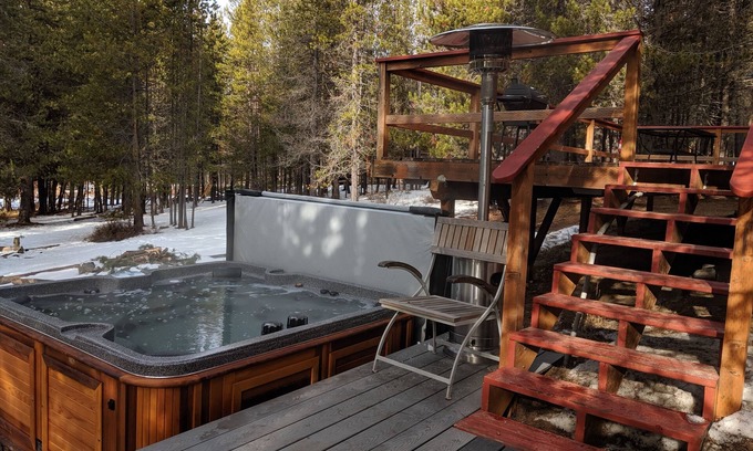 OUTDOOR LIVING: Furnished porch, charcoal grill, spacious yard, Kayaks available upon request, 2 decks, on the stream, HOT TUB for 7, Horse shoe area, Tether ball, Fire pit, horse corrals, miles of designated trails w/ lava rock formations, Willamette Ski Pass, Odell Lodge, Odell Lake, Crescent Lake, Snowmobile, petroglyphs, ancient Junipers, sage, and wildflowers. About 45 minutes to Crater lake.